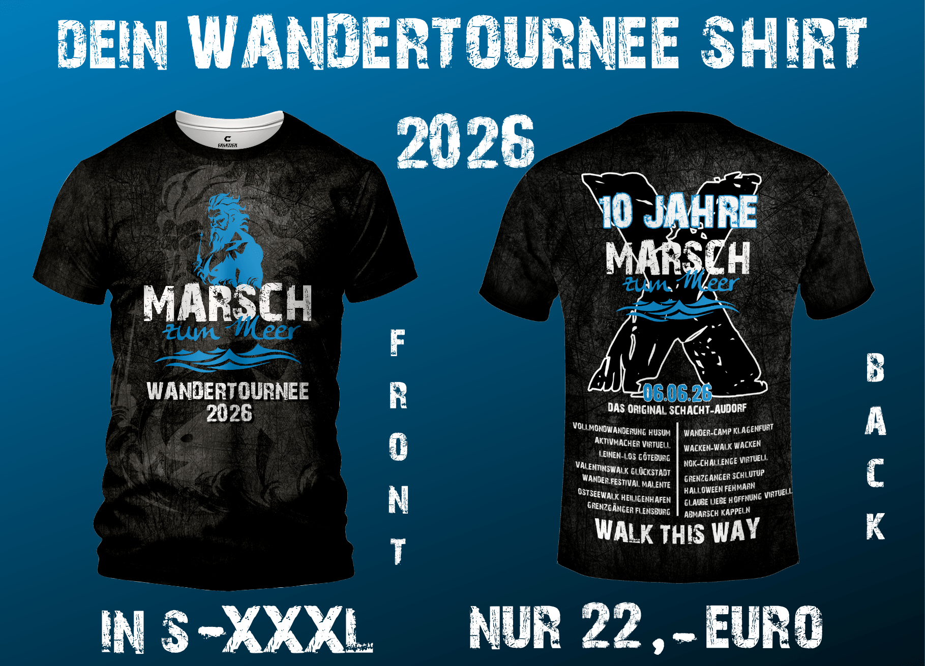 Die neue Marsch zum Meer-Website befindet sich noch in der Aufbauphase. Hier findest du bald einen nagelneuen Onlineshop, bis wir soweit sind, kannst du den Merch direkt über eine Anfrage bei uns bestellen.